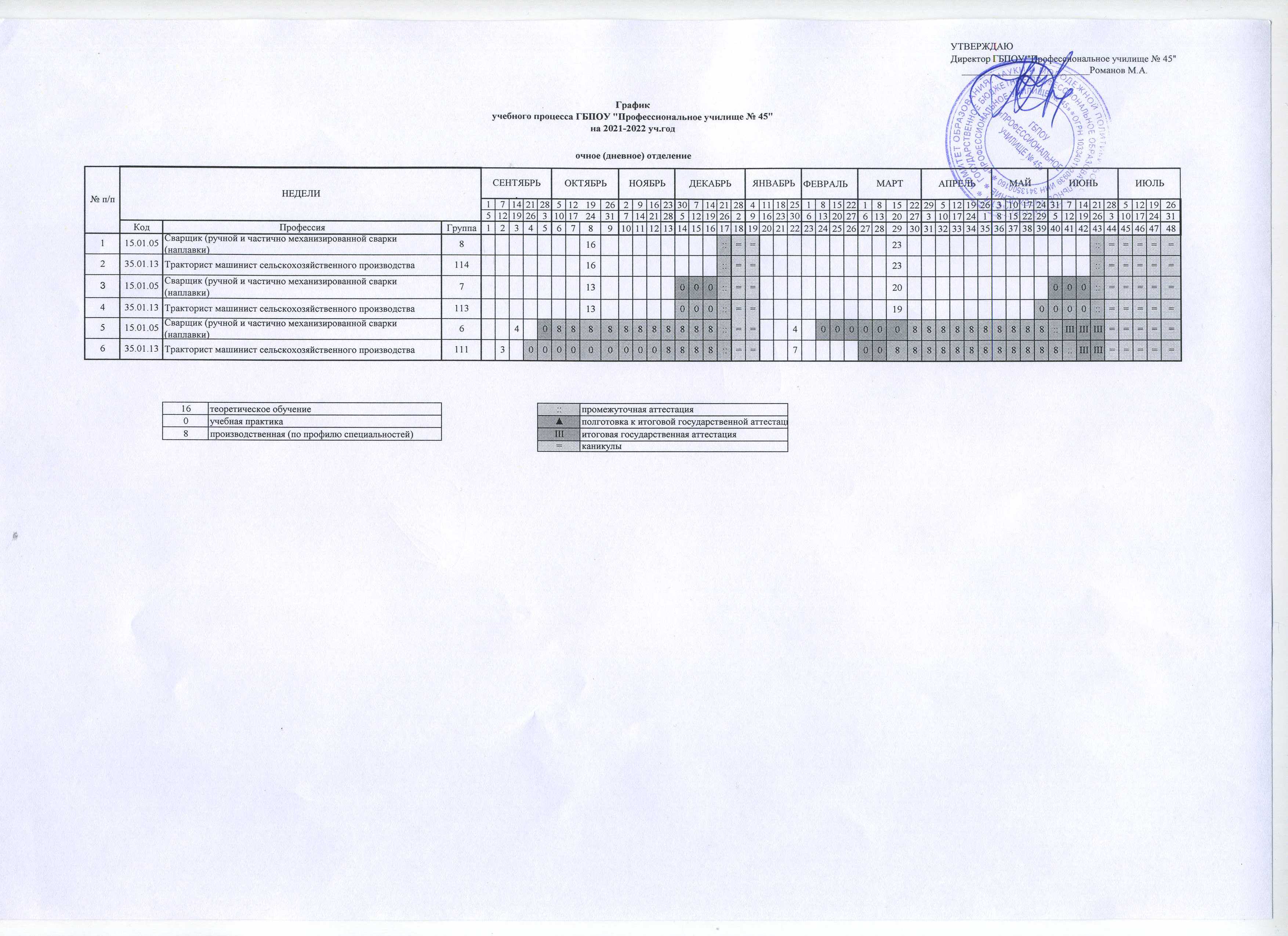 График учебного процесса на 2021-2022 уч.год